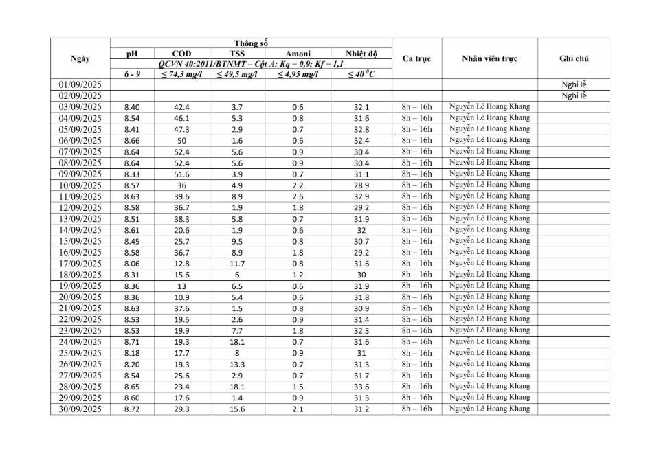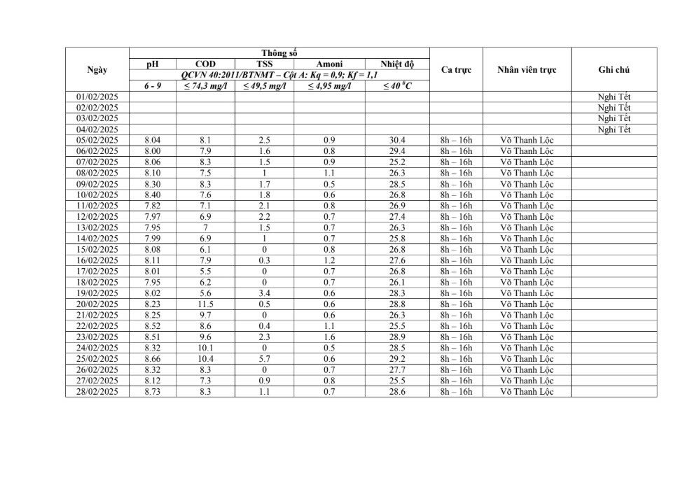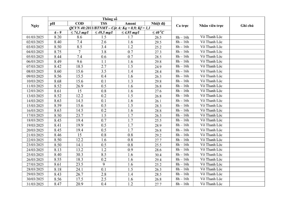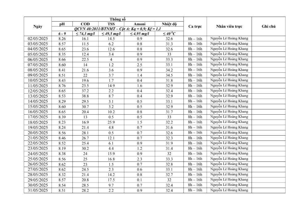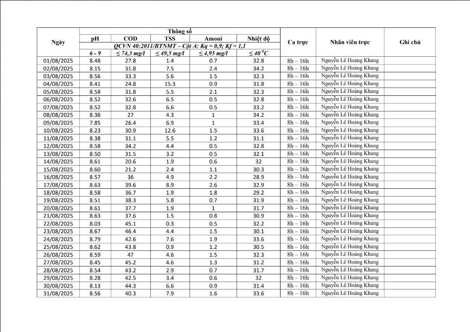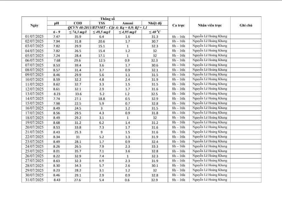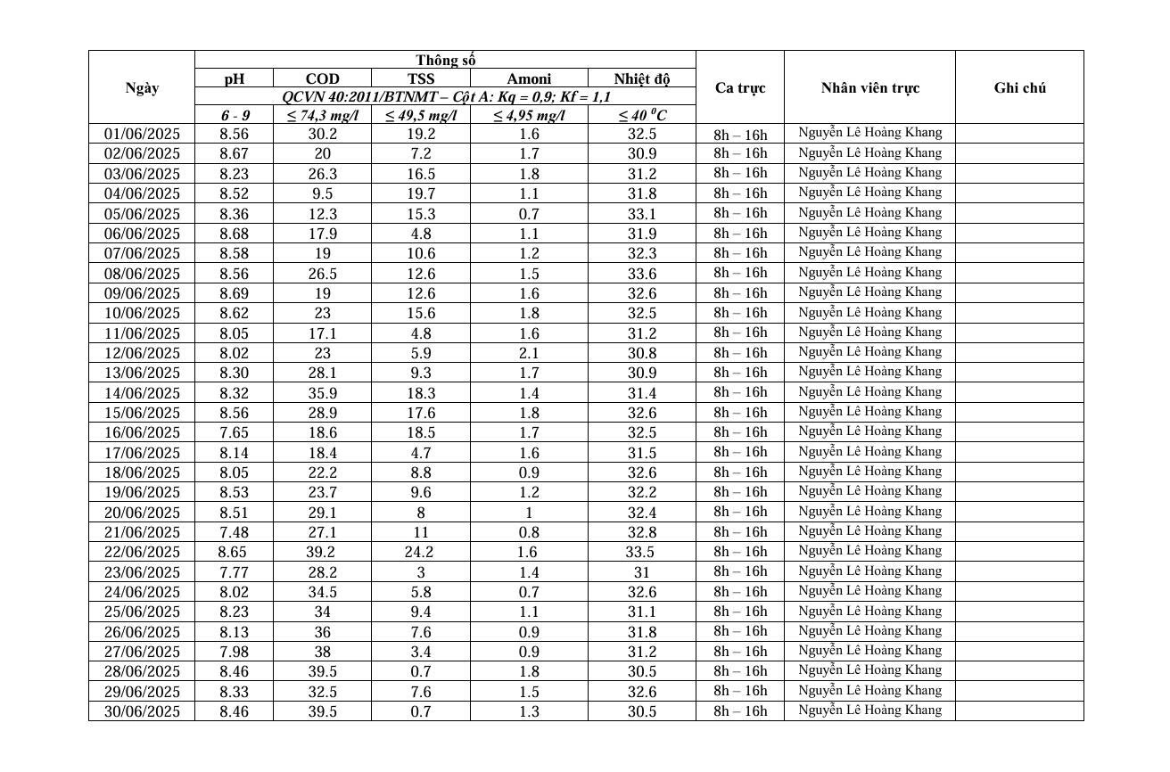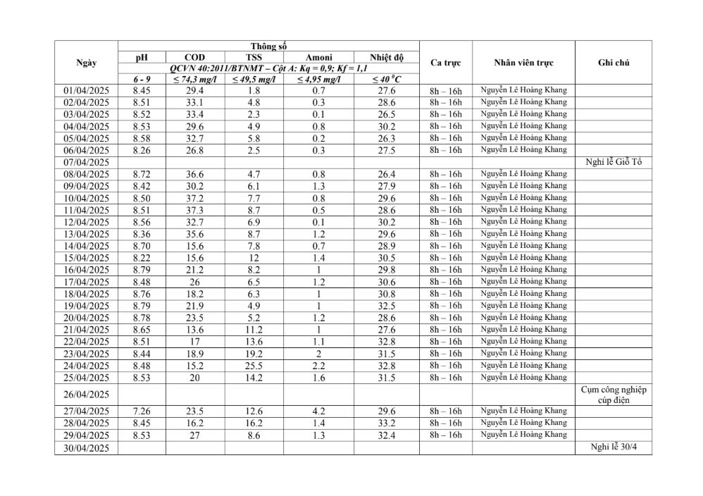 Dưới đây là kết quả chi tiết của báo cáo quan trắc môi trường định kỳ tại Cụm Công nghiệp Quốc Quang Long An:
